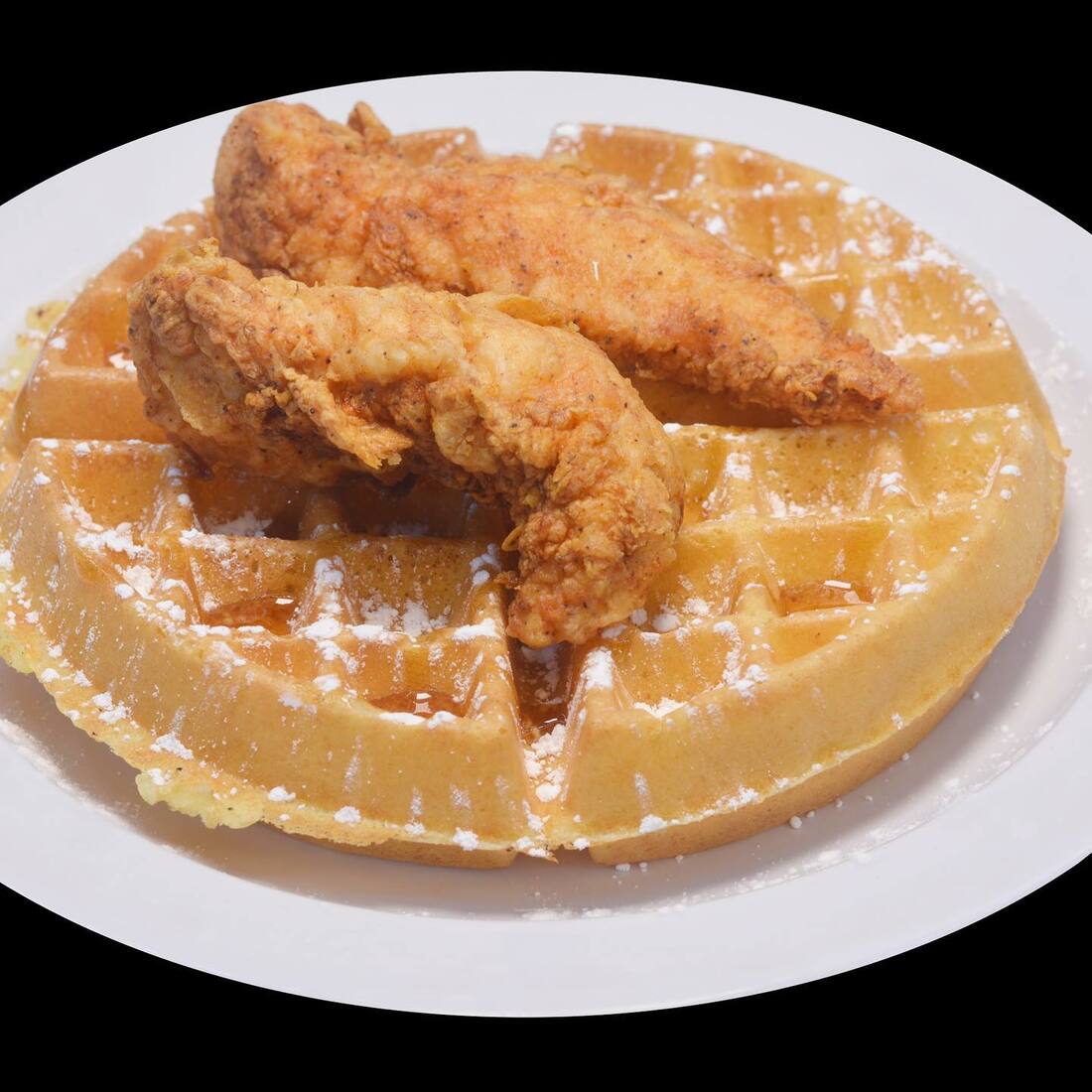 Food was Great! Had the red velvet and buttermilk waffles with chicken tenders. Ordered some extra wings and it was more than enough to please the palate. We decided to grab and go after realizing it’s in a food court in an office plaza. No other restaurants were open so it was dark and uninviting. Wish we had known before parking in the adjoining lot was $20 for 2 hours.