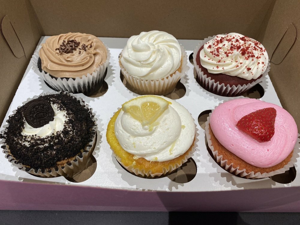 A friend gave me a box of these cupcakes for my birthday. The flavors were chocolate, red velvet, strawberry, and lemon. They looked great and tasted amazing!