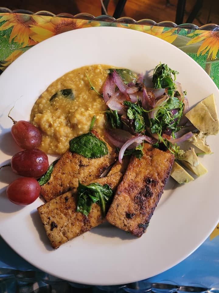 My man and I decided to take an afternoon spin over to his old neighborhood in Dorchester to pick up Oasis VVP takeout yesterday to enjoy outside. He's been a vegetarian for nearly a year now, and I'm following close behind on that health journey. We ordered the Oshun wrap, African Pot bowl, plus the Mango Moon and Blueberry Bash juices. We devoured each of our halves of the wrap with gooey, vegan cheese, seasoned kale and curry chickpea stew. We couldn't finish the bowl, which filled an entire large square takeout container. The spice of the lentil stew was absolute perfection on top of the fluffy, yellow couscous mixed with more kale and red cabbage. Needless to say we polished off the leftovers today. We both preferred the mango moon juice, mainly because of the can't go wrong mixture of turmeric, cinnamon, and agave with more of the consistency of a smoothie. The blueberry and banana juice didn't go unnoticed either, if you're a fan of those flavors. There will no doubt be many return visits from us to try out the rest of the menu!