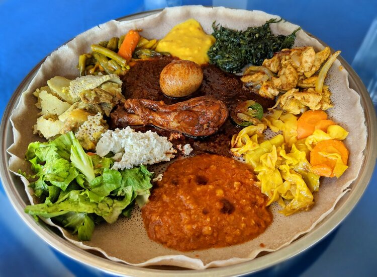 My family got takeout from Queen Sheba after spending some time in the Capitol Hill Occupied Protest area. The waitress who took our order was pleasant and helpfully answered questions we had about the sizes and how much we should order as a family of five. The food was ready in around 20 minutes, exactly how long we were told it’d be. We took the food to Cal Anderson park, about a two minute walk away, to eat. My mom, stepsister, and I are all vegetarian so we shared two veggie combos. This was more than enough food for the three of us and we all enjoyed the variety of vegetarian choices. I thought the injera was particularly delicious, a bit less sour than others I’ve tried and with a great texture. My stepdad and stepbrother both enjoyed their beef dishes. My stepbrother ordered the okra with beef, despite never having tried okra before, and really liked it. Overall, Queen Sheba is delicious, quick, and convenient, especially during this pandemic when takeout is the only option. The wide variety of dishes allows for people with just about any food restrictions, or none at all, to find something they’ll enjoy.